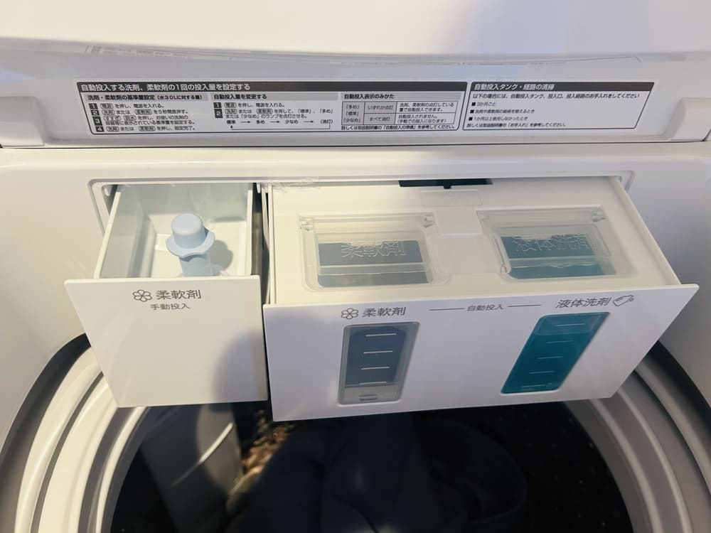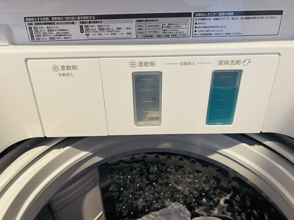 一番気に入っているのが液体洗剤・柔軟剤の自動投入タンク(各550ml)。