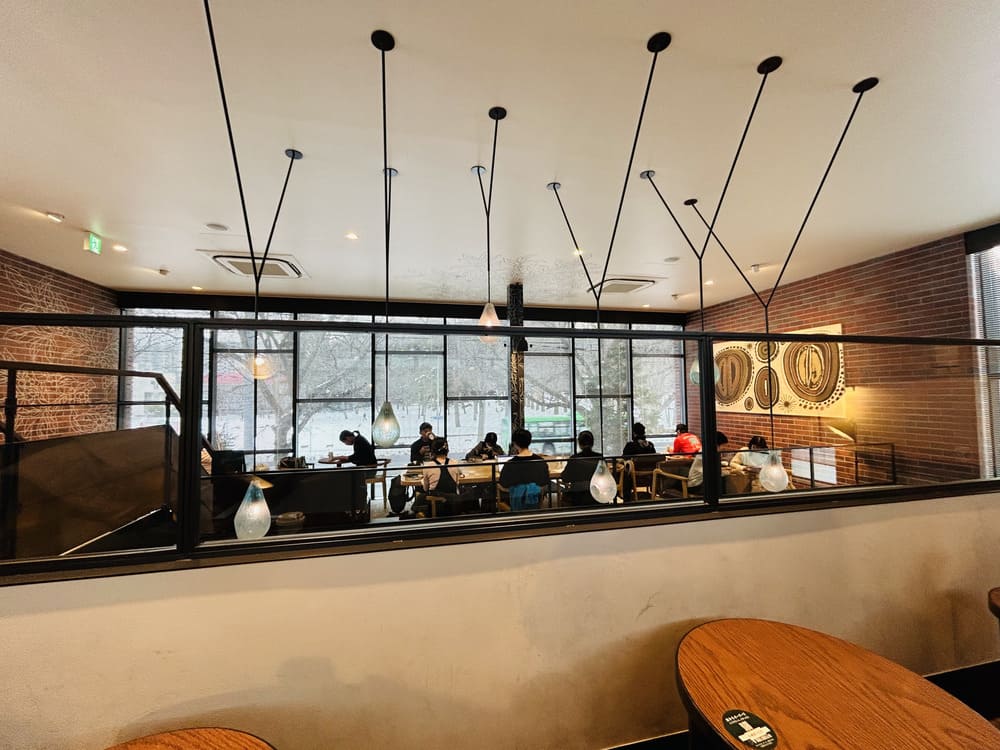 1階で注文して席は1階にも少しありますが、メインは地下の広いフロアです。観光客の出入りは多いですが、回転が早いのでほぼ毎回座れます。